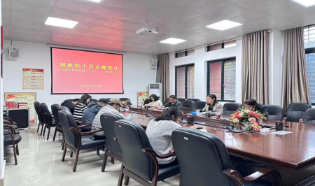 10月28日上午,继教院党支部在会议室开展10月主题党日活动,活动由党支部书记何志玉主持,全体党员教师参加。